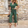 Elevate your style with our Western Short Sleeve Waist-controlled Jumpsuit!