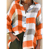 Embrace the cozy charm of fall and winter with our Women's Printed Long Sleeve Shirt Loose Plaid Shirt. Made with a comfortable polyester fiber and Spandex blend, this check-patterned shirt will keep you stylish and cozy all season long. So don't sacrifice fashion for comfort, get the best of both worlds with our must-have shirt. Whether you're lounging at home or heading out for a casual outing, this loose-fitting shirt ensures you look chic and feel comfortable all day long.